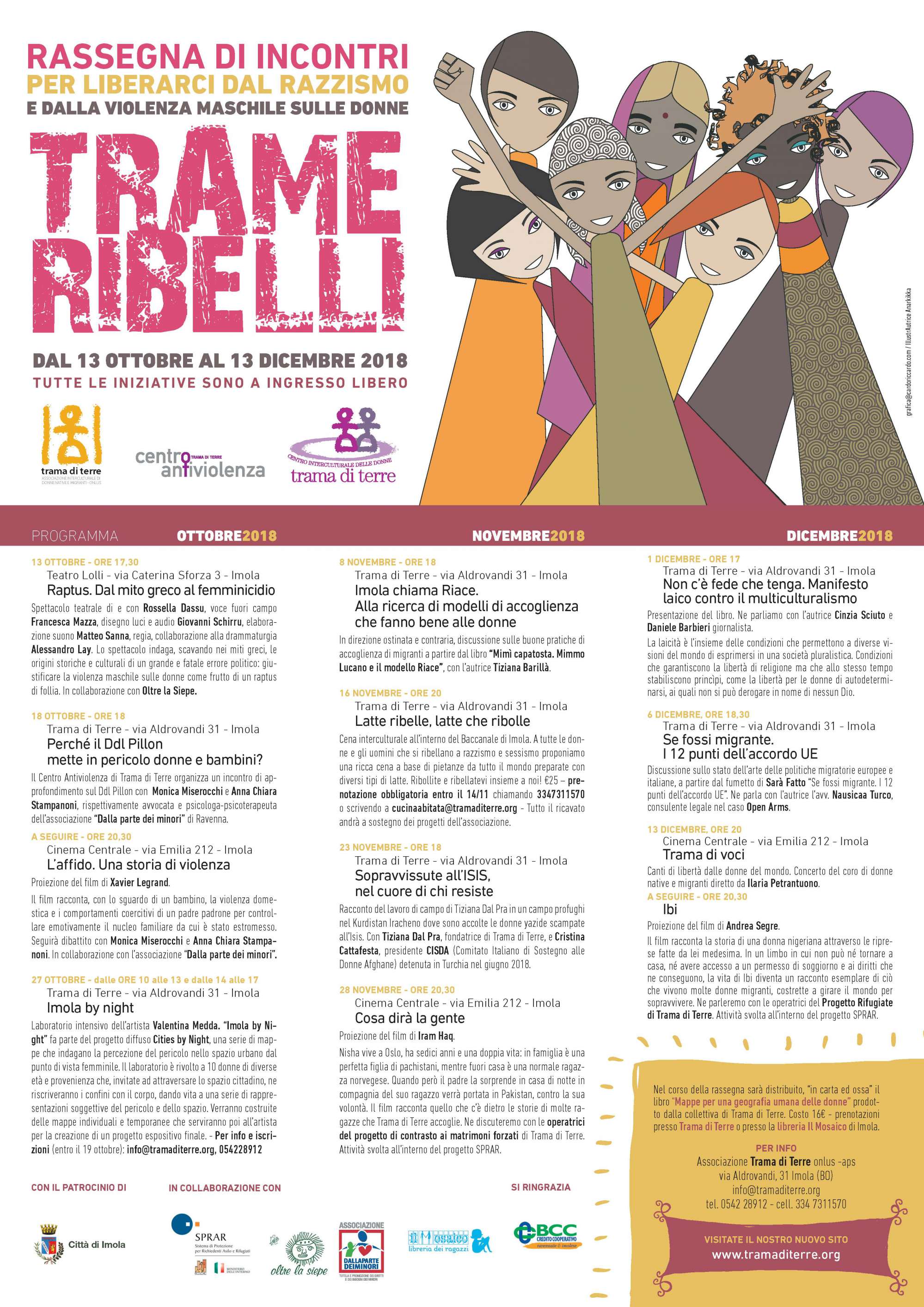 Dopo il grande successo dello spettacolo teatrale “Raptus. Dal mito greco al femminicidio”, che ha riempito il teatro Lolli sabato 13 ottobre, prosegue “Trame ribelli. Rassegna di incontri per liberarci dal razzismo e dalla violenza maschile sulle donne”.