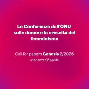 «Genesis» intende dedicare un fascicolo monografico al tema Le Conferenze dell’ONU sulle donne e la crescita planetaria del femminismo: tensioni e interazioni. Si invitano ricercatrici e ricercatori a proporre articoli originali che si confrontino con il tema e apportino nuove prospettive, fonti e metodologie, secondo quanto indicato nella call for proposals, con scadenza 25 aprile 2026.