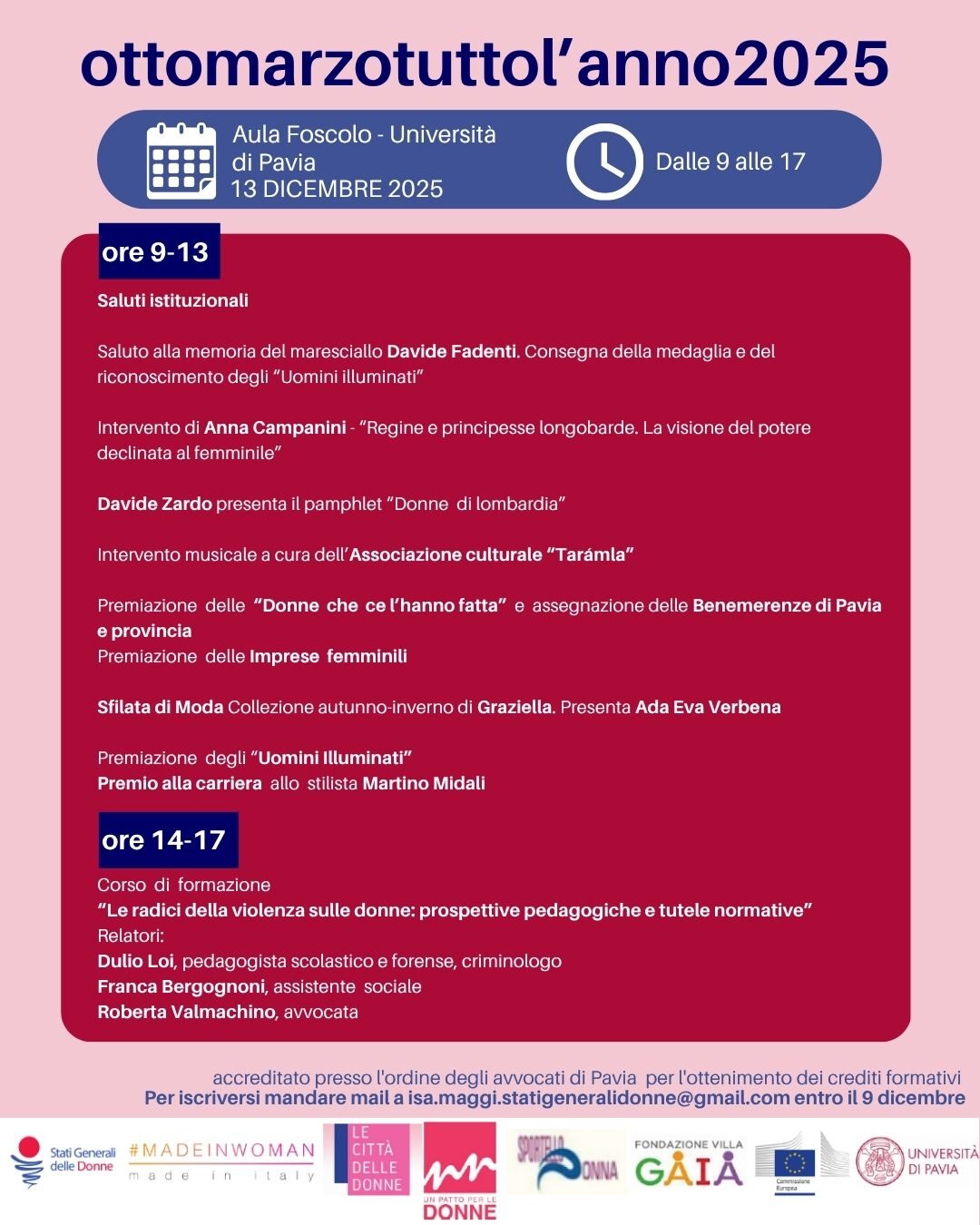 Pavia,13 dicembre: Ottomarzotuttol’anno2025
